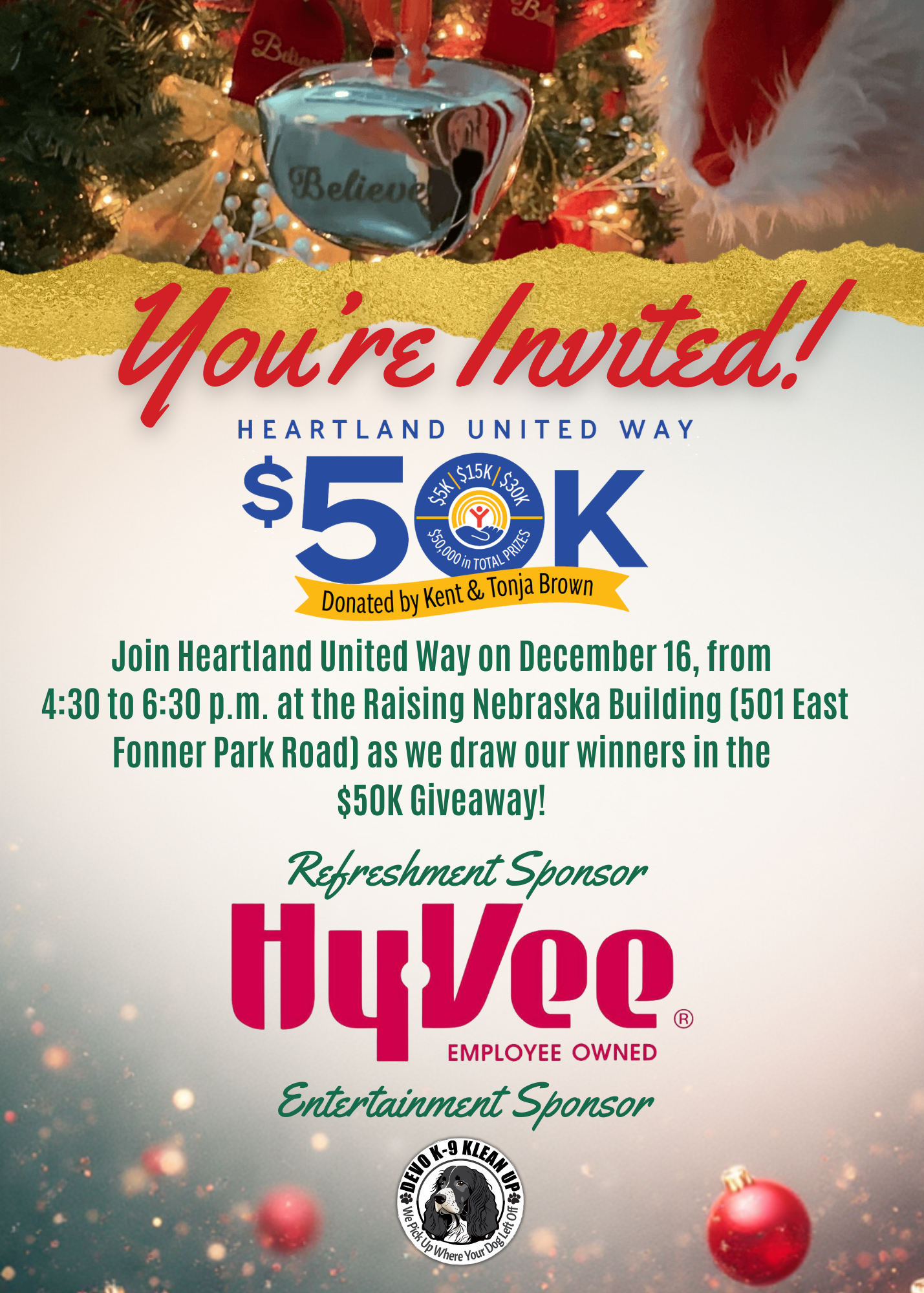 In 2025, those who donate at least $312, or $6 a week, will qualify for an entry into the Heartland United Way $50K Giveaway thanks to a generous gift from Campaign Chairs Kent and Tonja Brown.