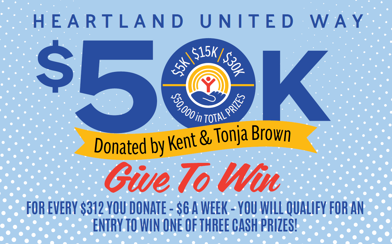 For every $312 donated, you qualify for an entry to win one of three cash prizes totaling $50,000—$30,000, $15,000, or $5,000—generously provided by Campaign Chairs Kent and Tonja Brown. Winners will be announced on December 16th.