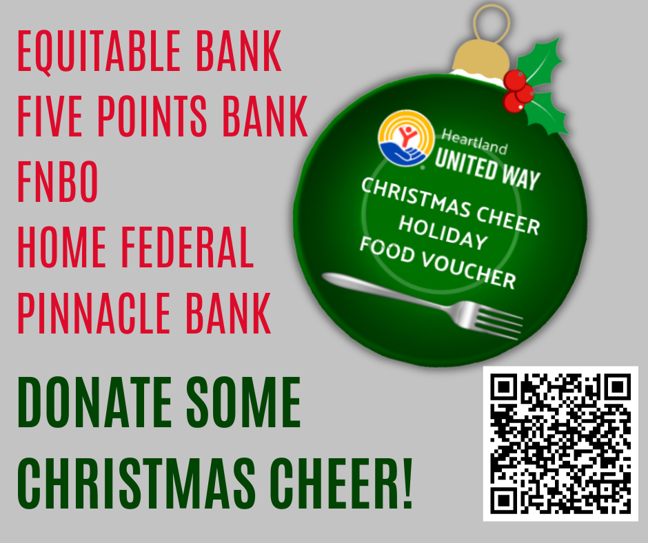 You can donate to Christmas Cheer by cash or check at the Heartland United Way office at 1441 N. Webb Road in Grand Island and these Grand Island bank locations.