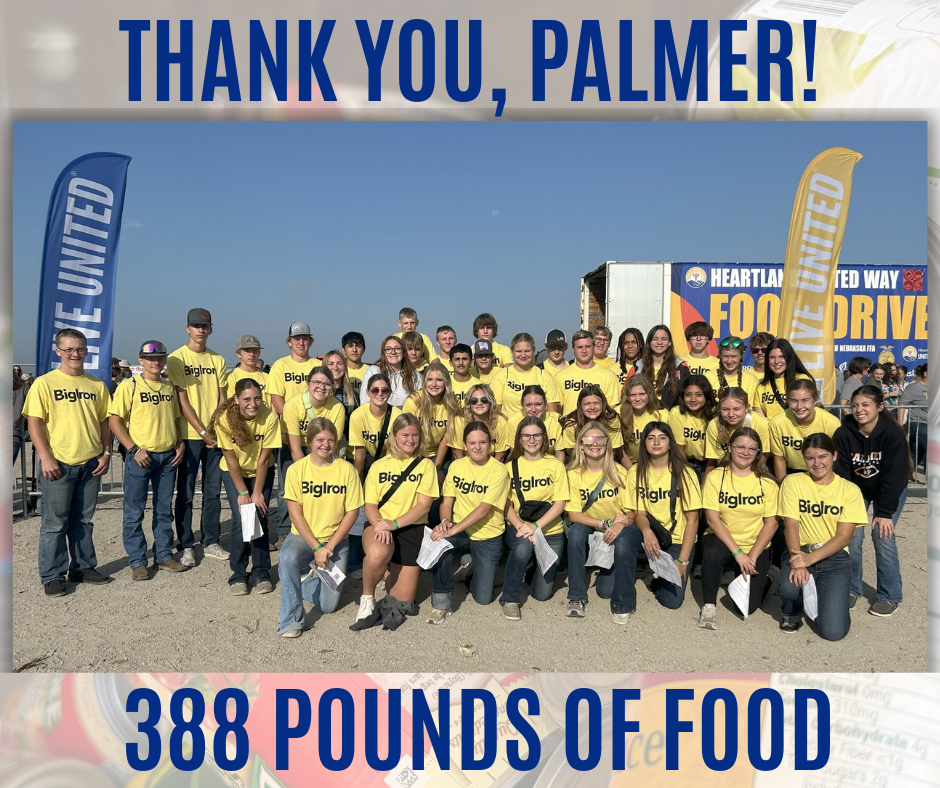 Small schools led the way in 2025 with Palmer, Ansley, and Elmwood Murdock all donating more than 300 pounds. Palmer Public Schools brought the most food with 388 pounds!