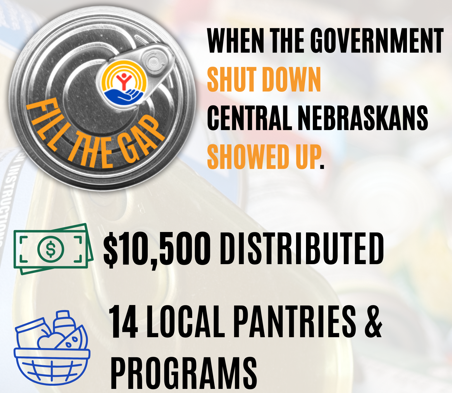 In late October, the Heartland United Way acted fast to meet a growing need as SNAP benefits were temporarily paused and some government workers went without pay during the government shutdown. HUW collected funds and encouraged people to drop off nonperishable food items at their local pantry.